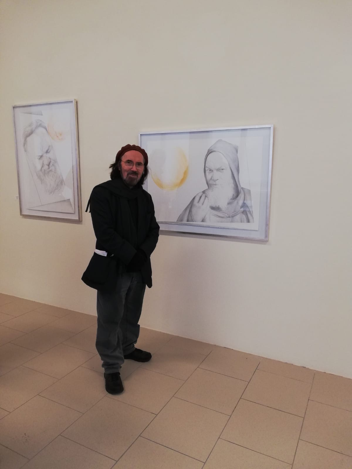 Antonio Ciccone davanti alla sua opera "Fra Daniele Natale: Questioning"